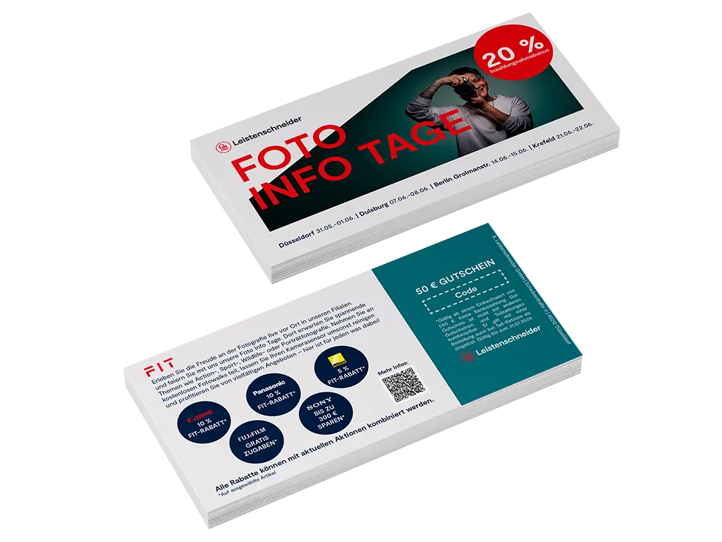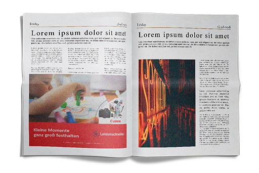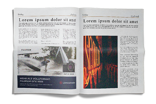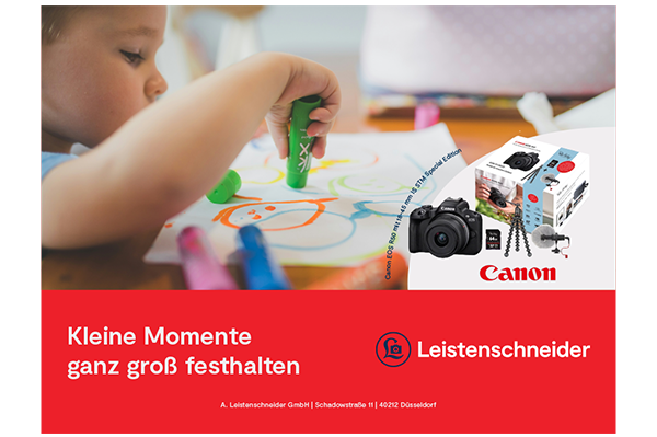 zwei anzeigen für den fachhandel, realisiert in zusammenarbeit mit herstellern zur gezielten bewerbung ausgewählter produkte. thematisiert werden ein canon kit zum schulanfang sowie die markteinführung einer neuen fujifilm kamera. das wording wurde seitens der hersteller vorgegeben, gestaltungskonzept, bildauswahl und layoutsystem wurden eigenständig entwickelt und CI-konform bis zur druckfertigen anzeige ausgearbeitet.